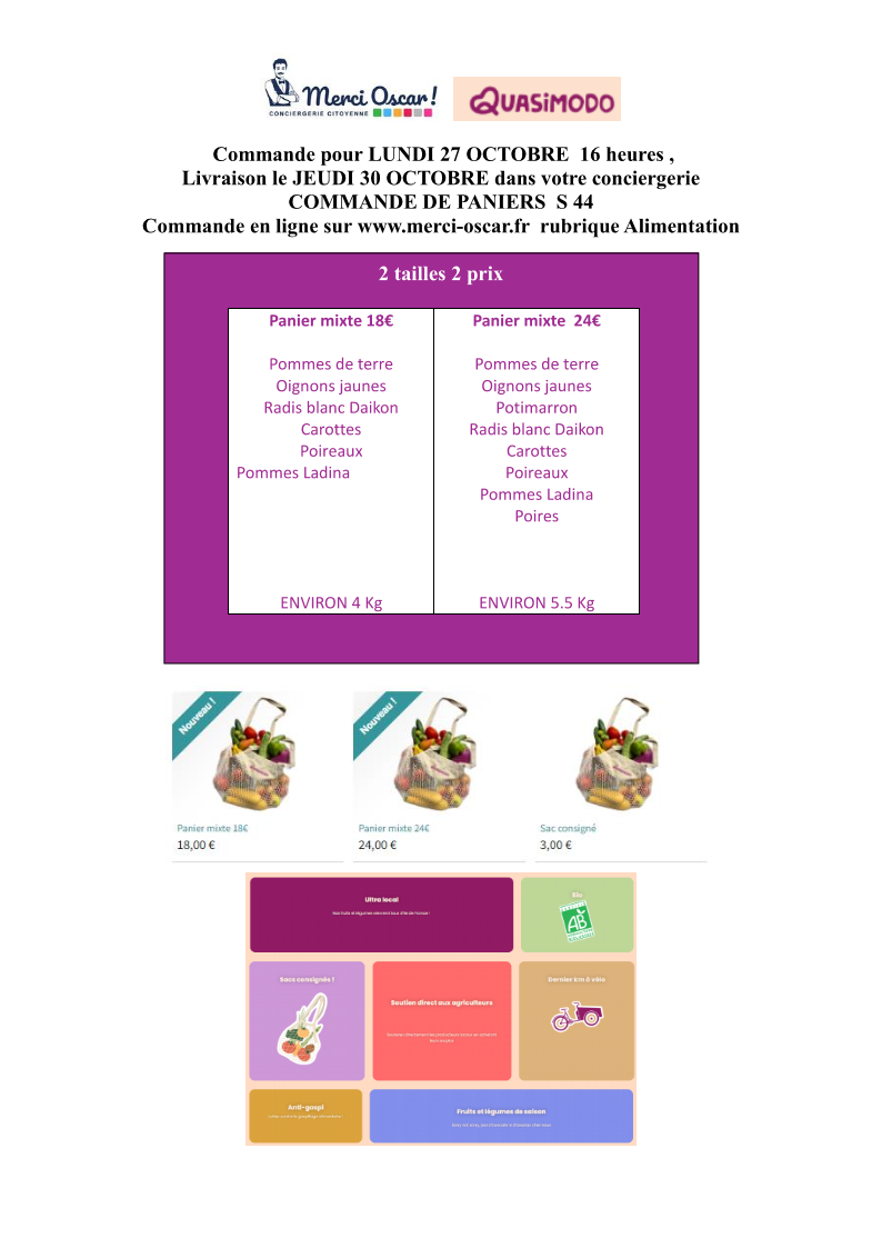 Paniers de fruits et légumes Quasimodo