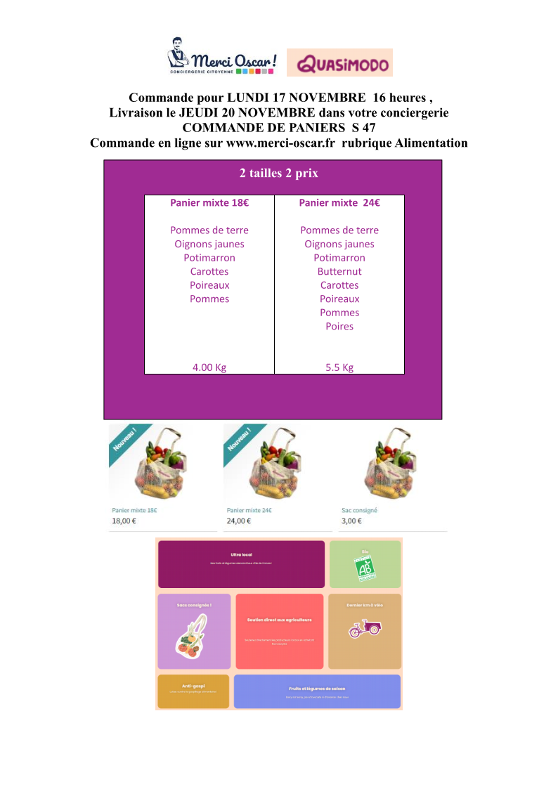 Aucun article défini dans la catégorie "Alimentation / Paniers de fruits et légumes Quasimodo".