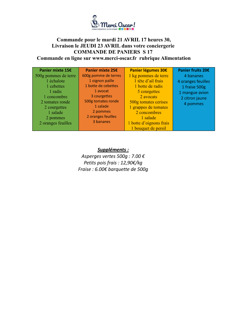 Commandez Votre Panier Paysan le mardi 17h30, livraison sur votre conciergerie le jeudi.